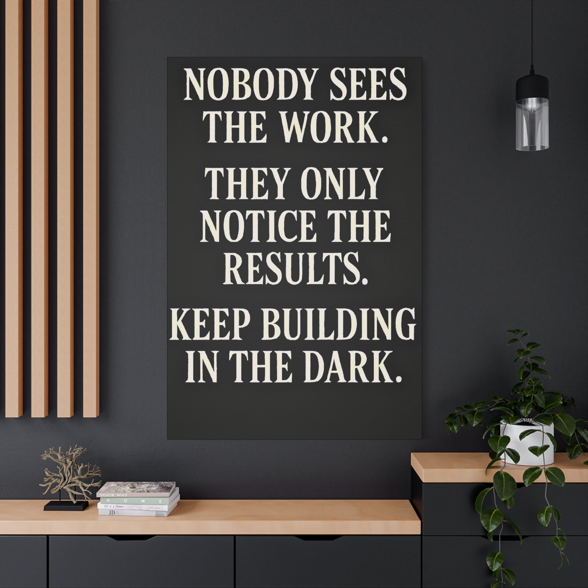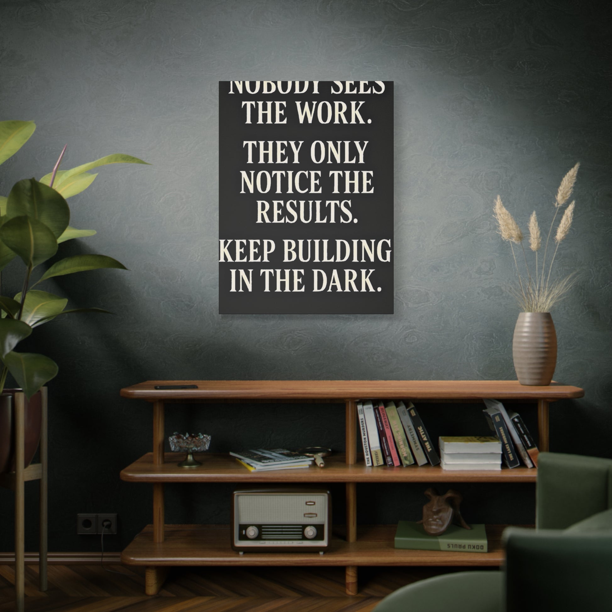 This bold 40x60 vertical canvas screams focus, grit, and perseverance. With sharp, minimalist typography and a message that punches you in the gut, this piece is for the grinders, the builders, the ones who don’t need applause to stay hungry.
